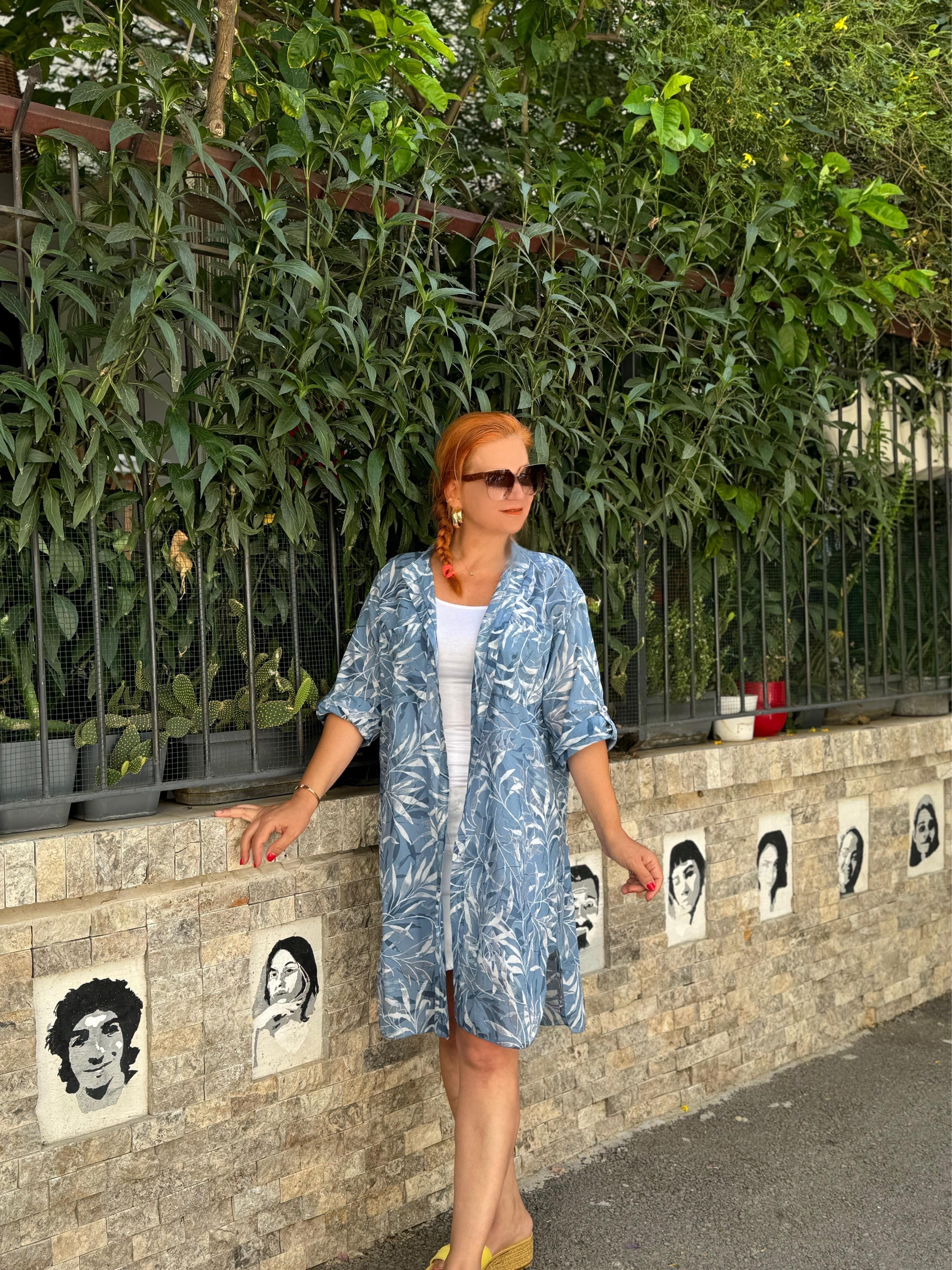 016718 PREMIUM İTHAL PAMUKLU GÖMLEK YAPRAK DESEN MAVİ 46 BEDENE KADAR UYUMLUDUR