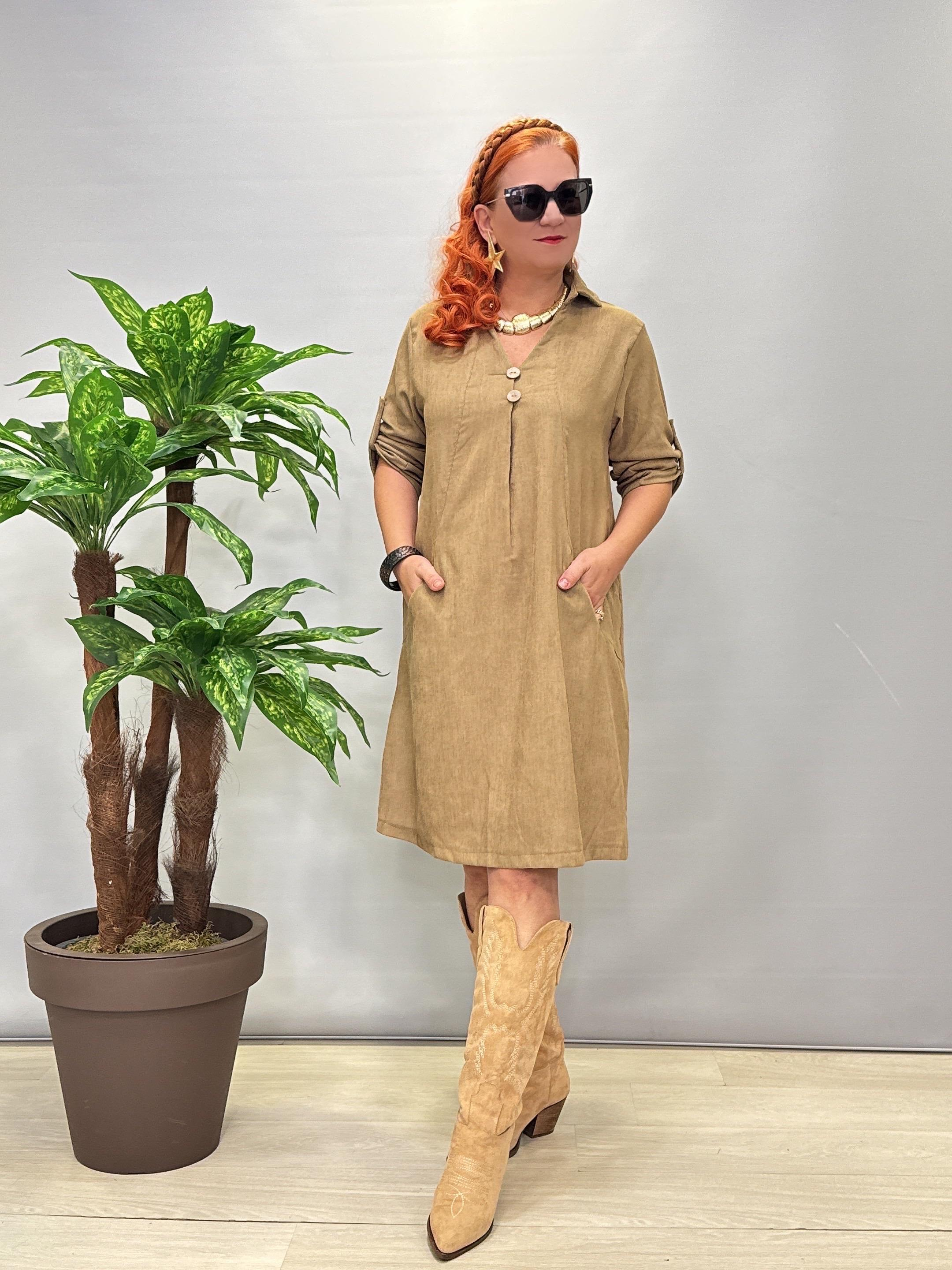 1470 Şönil Kadife Elbise Yağ Yeşili