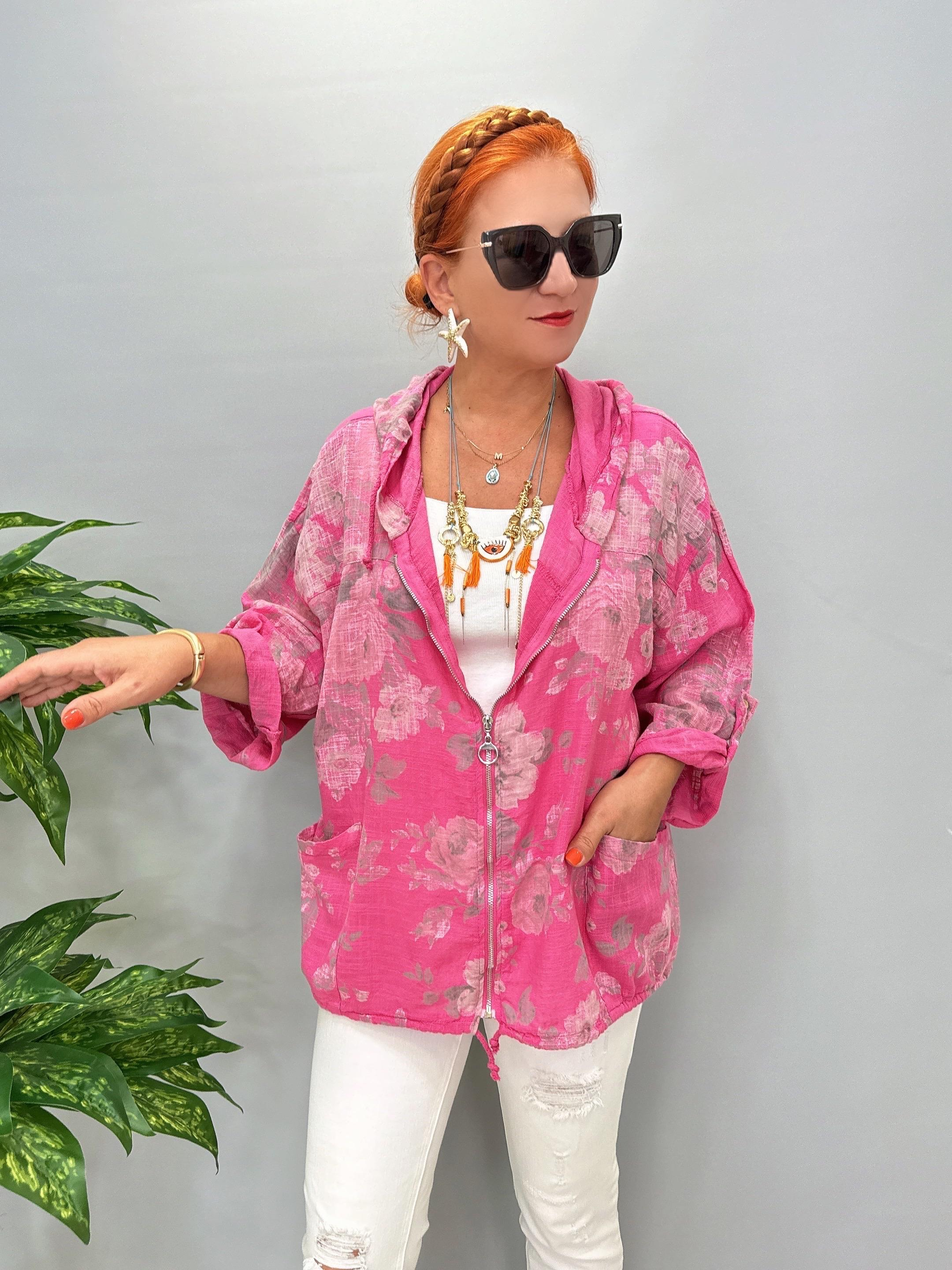 2088 Italyan Pamuklu Fermuarlı Mevsimlik Ceket Pembe