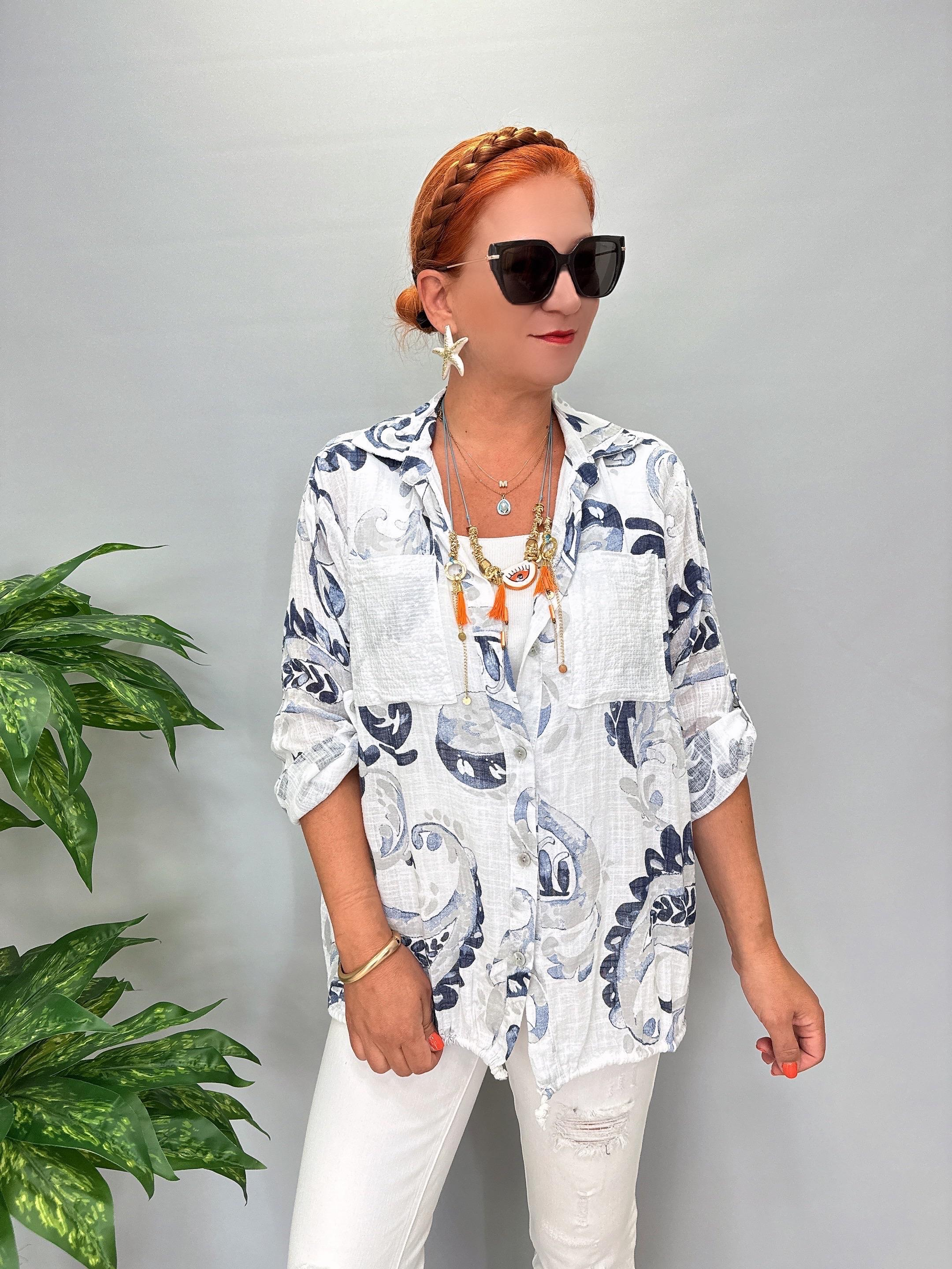 2088 Italyan Şal Desen Mevsimlik Ceket Beyaz