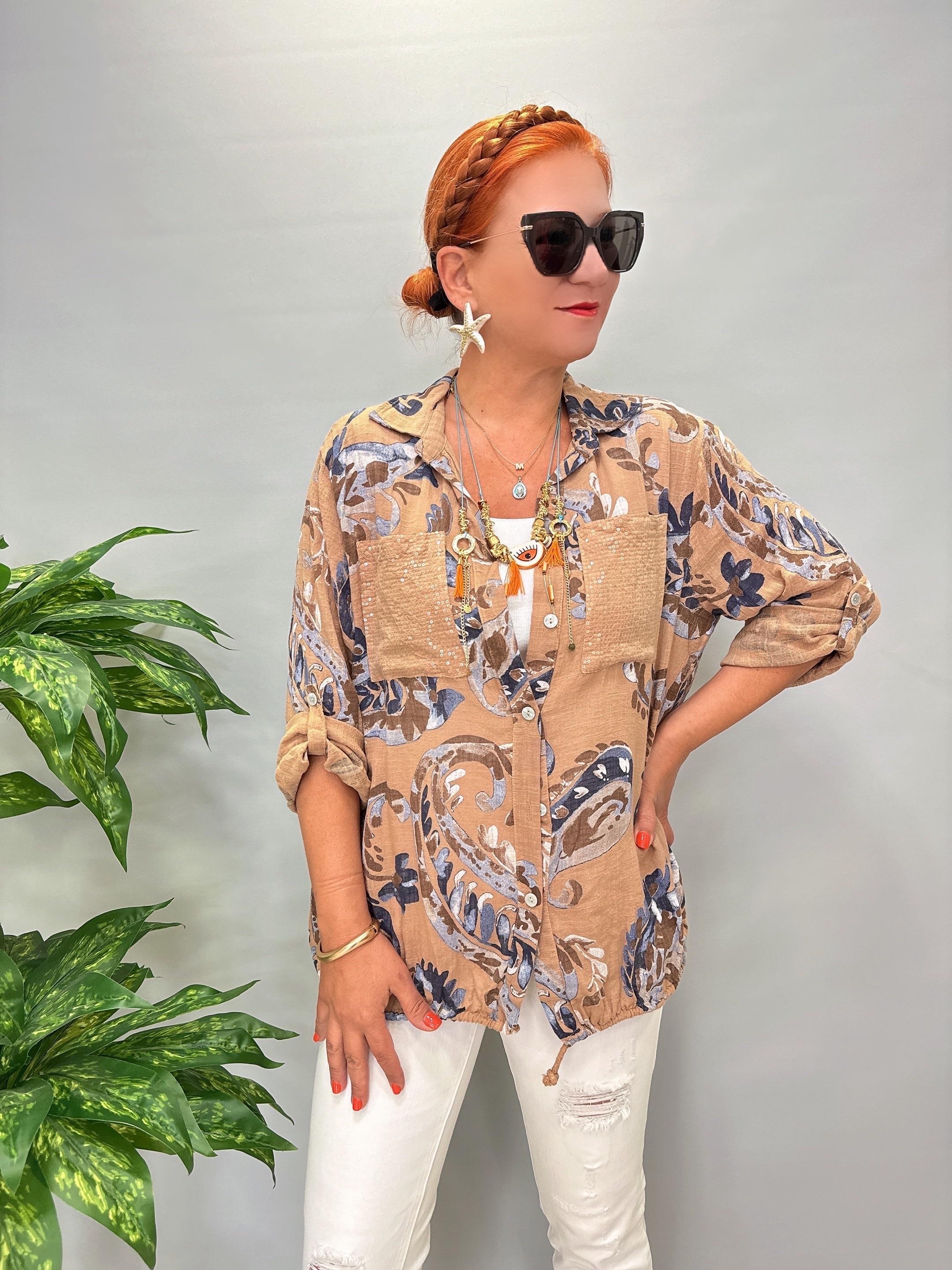 2088 Italyan Şal Desen Mevsimlik Ceket Camel