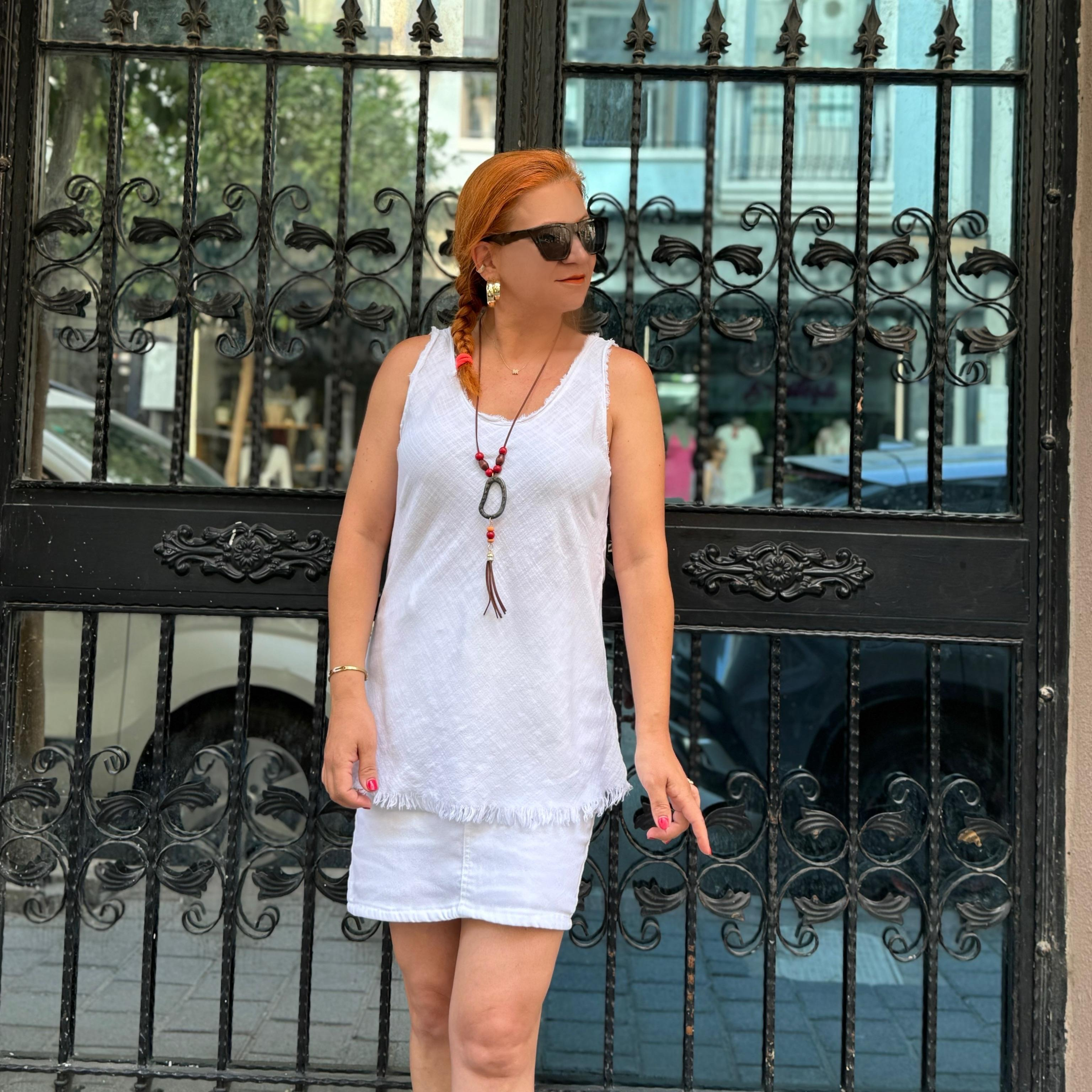 6100 Kolye Hediyeli Pamuklu Askılı Bluz Beyaz 36-40 Beden Uyumludur