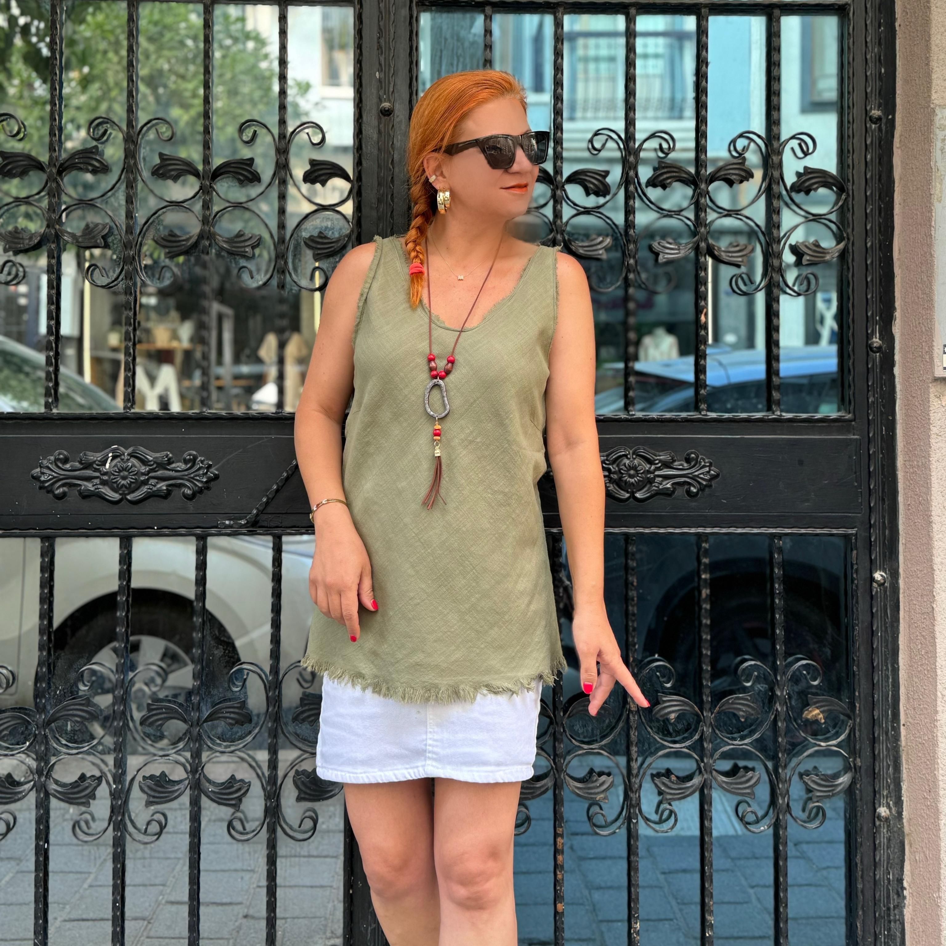 6100 Kolye Hediyeli Pamuklu Askılı Bluz Haki 36-40 Beden Uyumludur