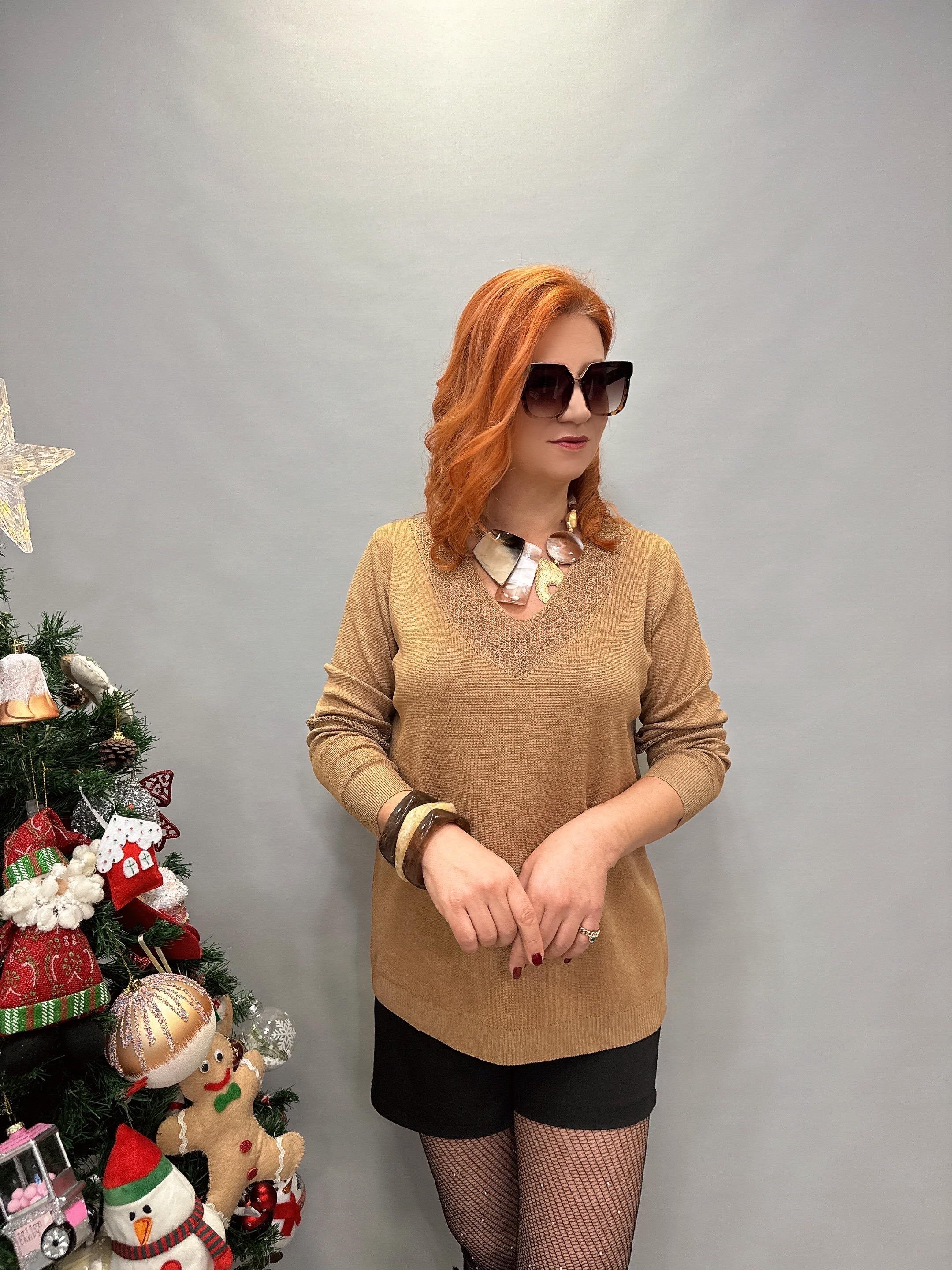 MNS12787 V YAKA KOL VE YAKA DETAY TRİKO VİZON