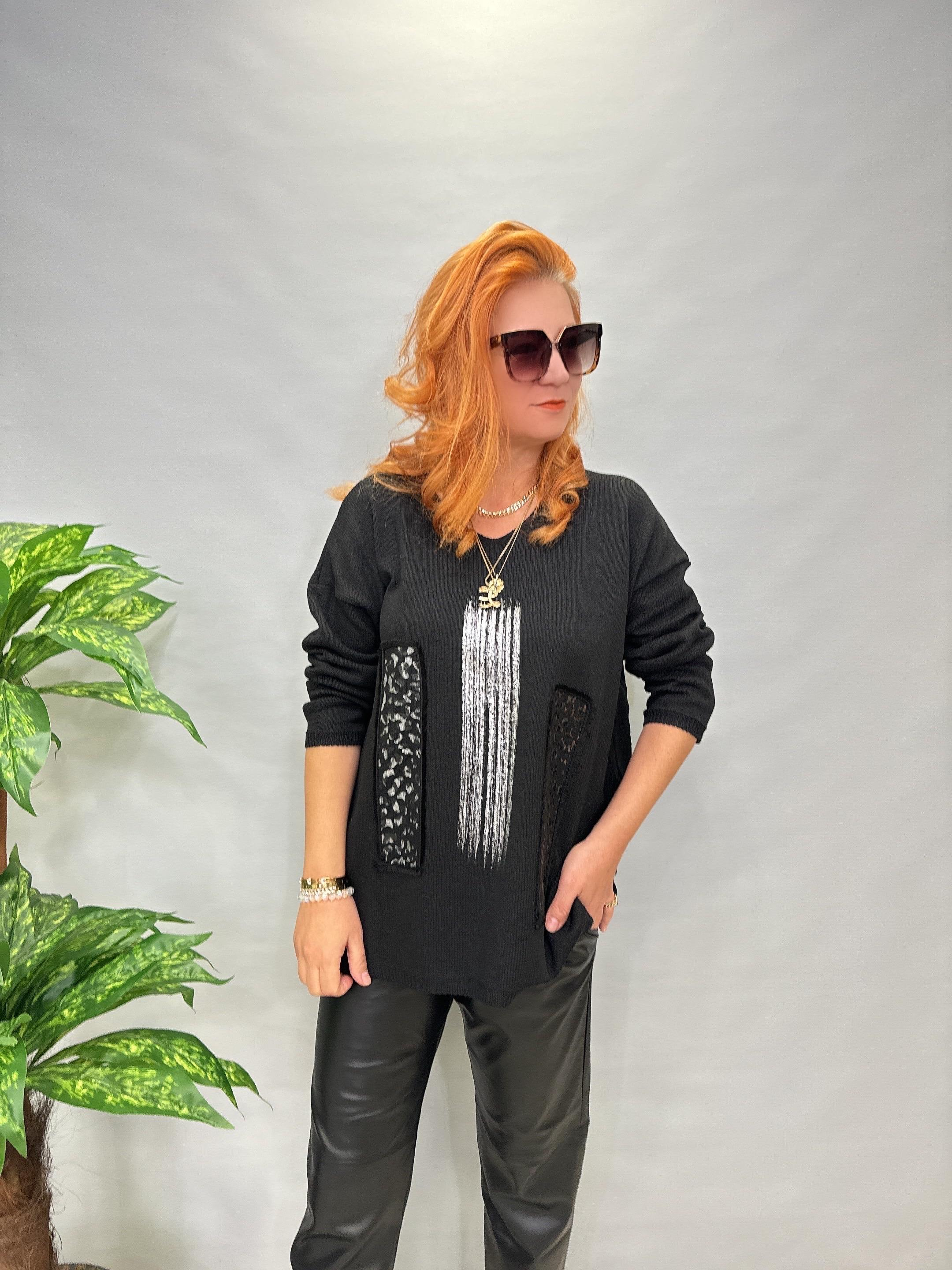 Mns 0015 V Yaka Varak Detay Triko Siyah