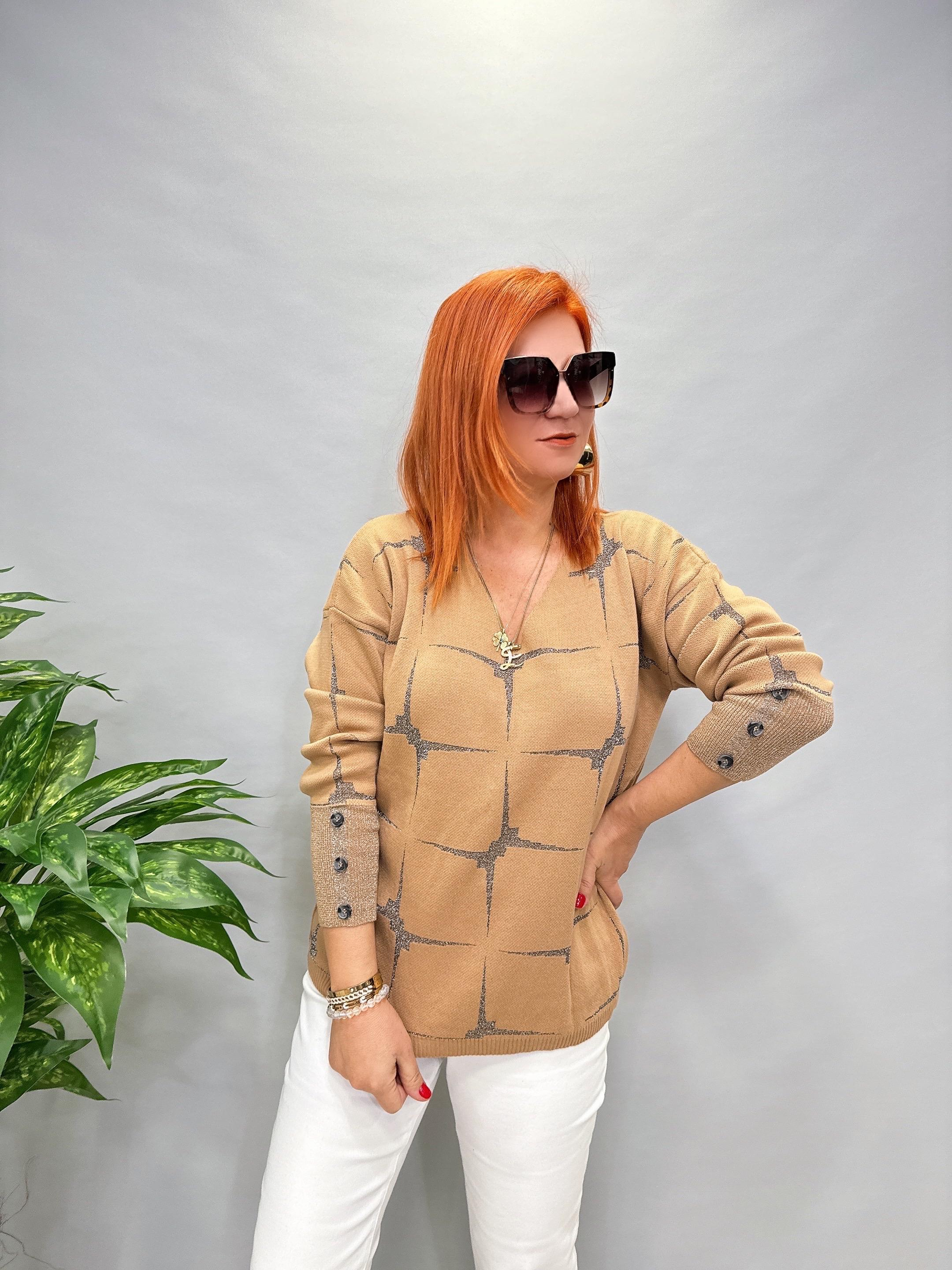 MNS 21080 V YAKA SİMLİ KOL DETAY TRİKO VİZON