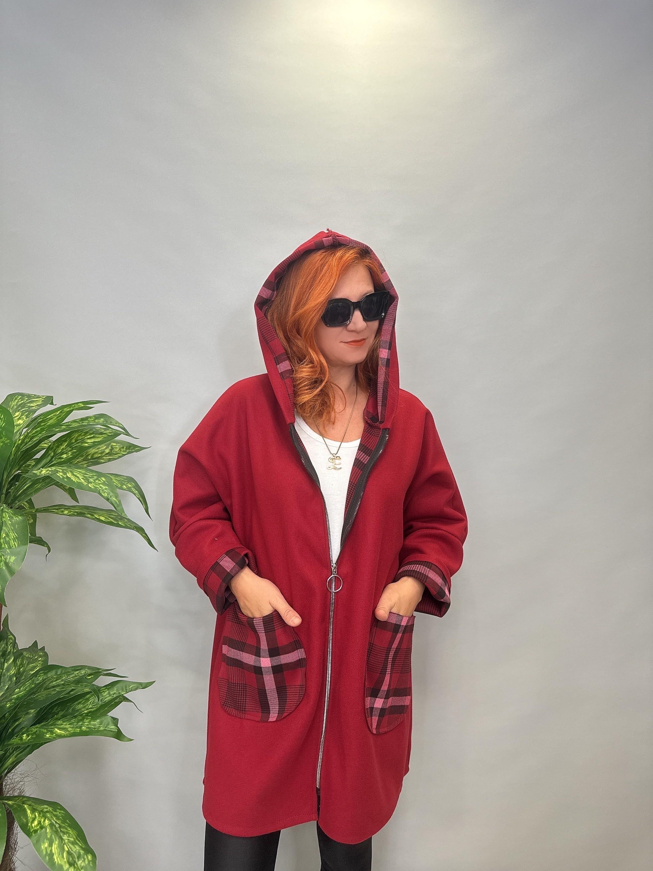 MNS 5068 İTALYAN EKOSE DETAY KAŞE CEKET BORDO 50 BEDENE KADAR UYUMLUDUR