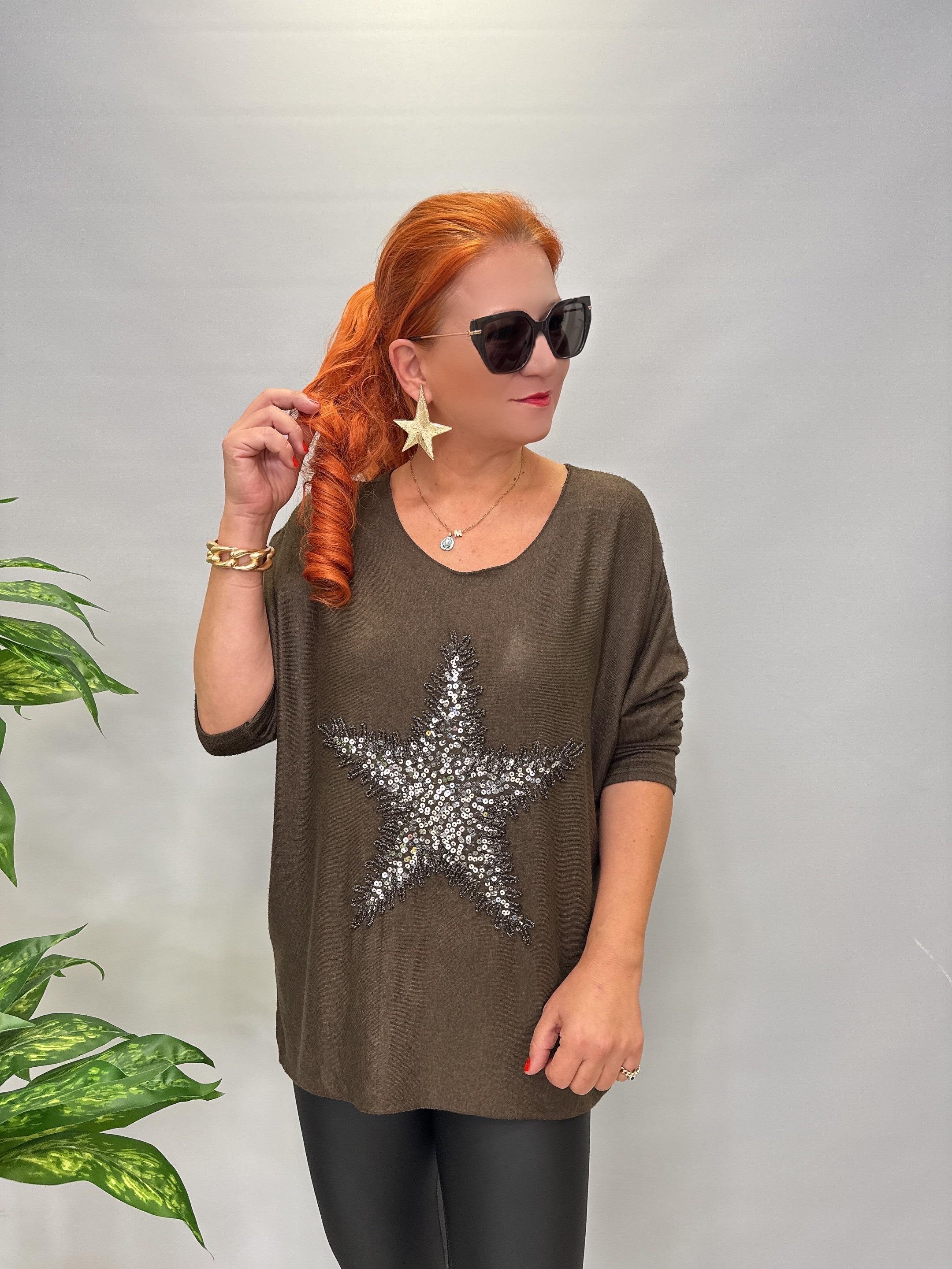 MNS 86511 İTALYAN LİKRALI YUMUŞAK YILDIZ PAYET DETAY BLUZ 46 BEDENE UYUMLU Kahve