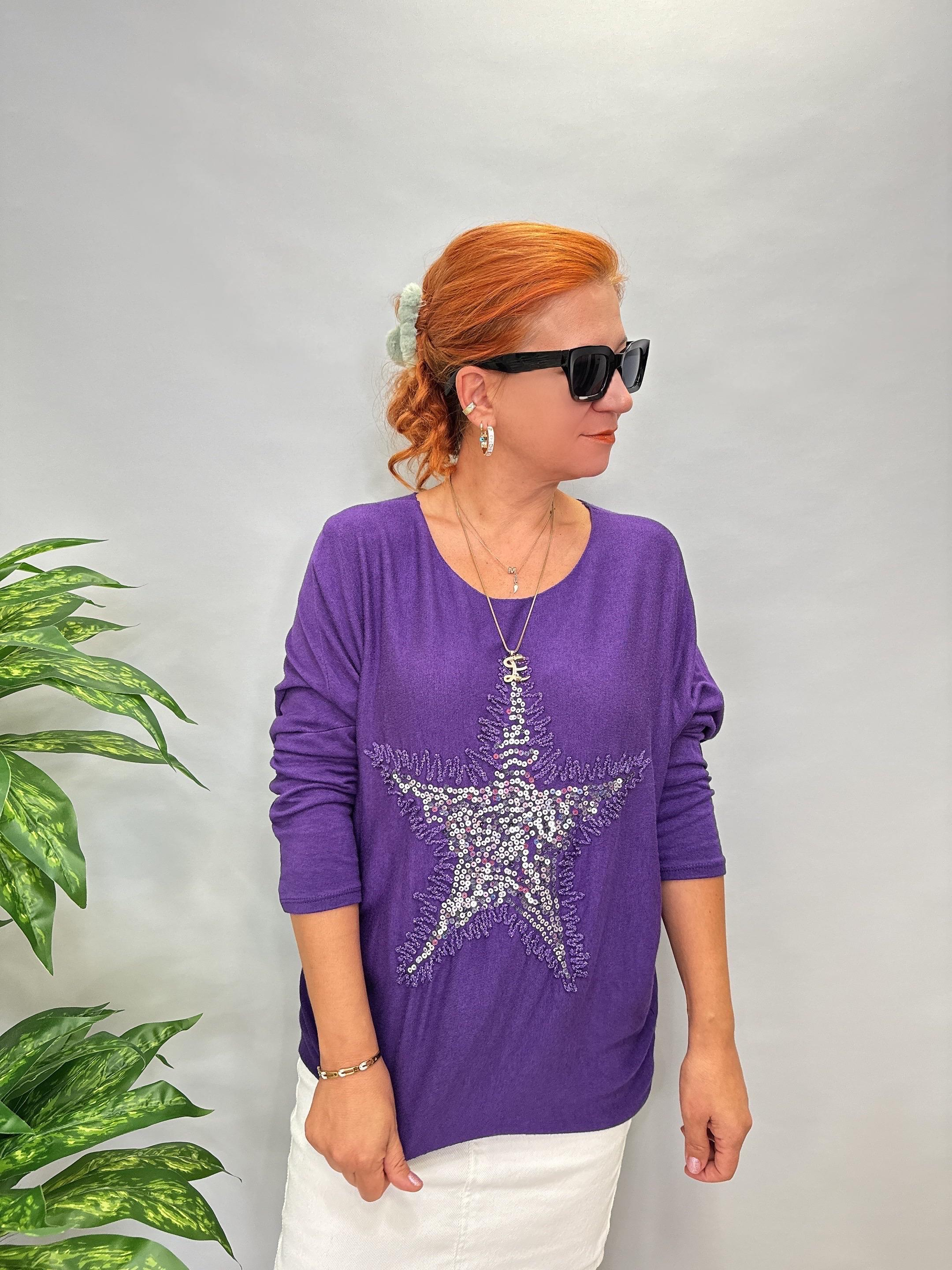 MNS 86511 İTALYAN LİKRALI YUMUŞAK YILDIZ PAYET DETAY BLUZ 46 BEDENE UYUMLU MOR