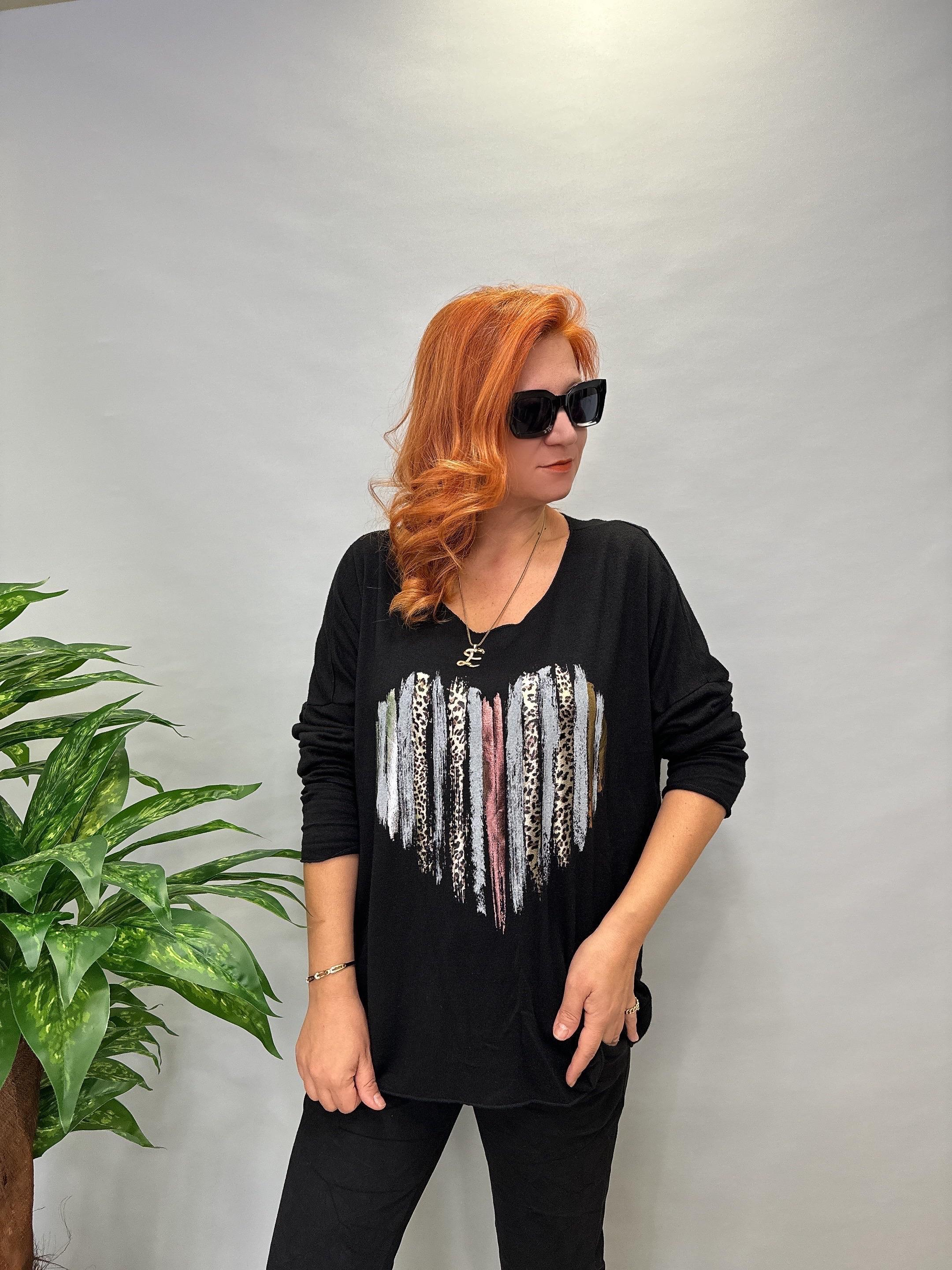 MNS 9025 İTALYAN ZEBRA KALP DETAY EXTRA YUMUŞAK TRİKO BLUZ SİYAH 46 BEDENE KADAR UYUMLUDUR