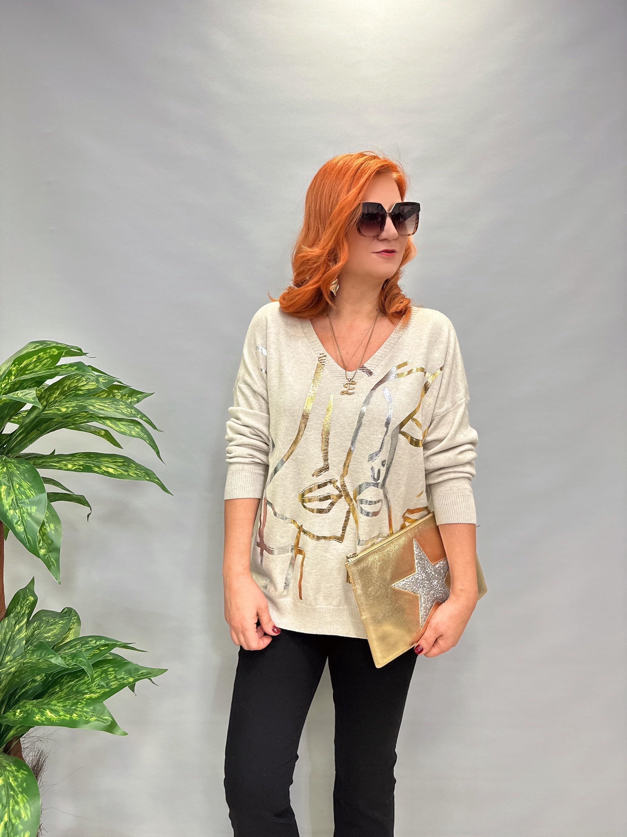 R 3251 V YAKA SİLÜET DETAY ANGORA KAZAK EKRU
