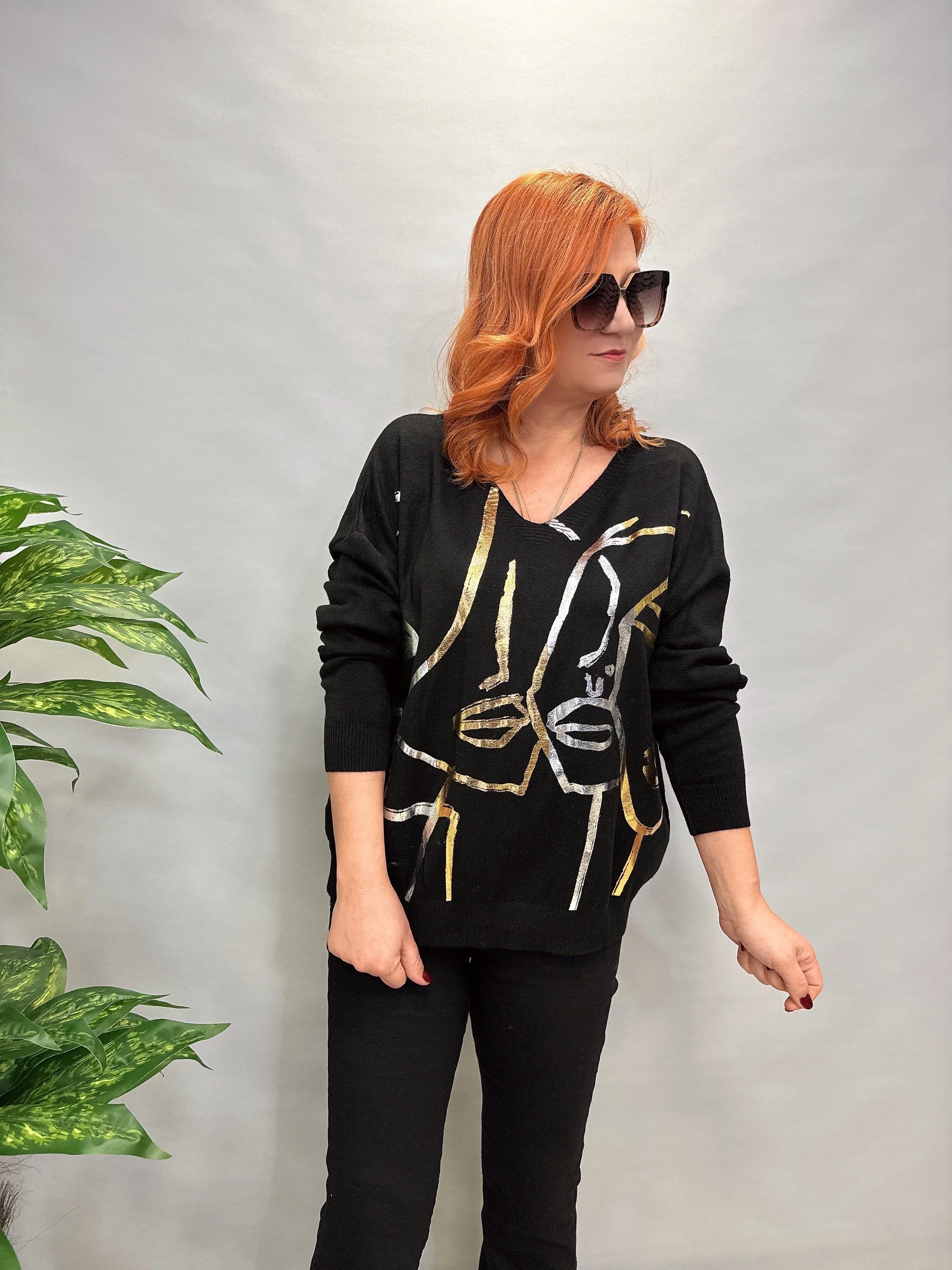 R 3251 V YAKA SİLÜET DETAY ANGORA KAZAK SİYAH